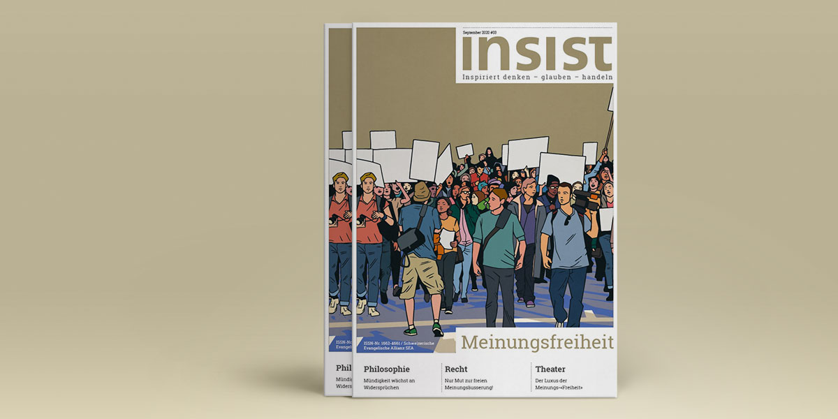 Dieses Thema beschäftigt aber nicht nur uns heute. Schon die Griechen schrieben über die Bedeutung von Freiheit. In der Bibel wird das Menschenrecht der Meinungsfreiheit zwar nicht direkt thematisiert, aber es lassen sich viele Bezüge finden und wird immer wieder kritisch darauf hingewiesen, wenn die Meinungsfreiheit nicht gewährt wird. Marc Jost, Generalsekretär der SEA, geht dem grundlegenden Freiheitsrecht in der neuesten Ausgabe des Magazins INSIST aus biblischer Sicht nach. Weiter beantworten die diversen Autorinnen und Autoren die Fragen nach Ursprüngen und aktuellen Tendenzen der Meinungsfreiheit, worauf es bei der Kommunikation des Evangeliums in der Öffentlichkeit ankommt, was Toleranz aus christlicher Sicht heisst. Und sie thematisieren die Bedeutung, Möglichkeiten und Grenzen der Meinungsfreiheit in unterschiedlichen Anwendungsbereichen, zum Beispiel im Umgang mit Kindern oder im Asylwesen.